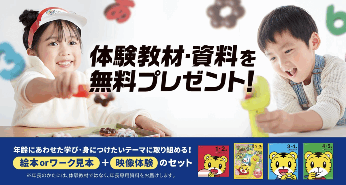 教材 | 紙ワーク、動画教材、絵本、エデュトイ、デジタル教材(しまじろうクラブ)、保護者向け情報誌 |