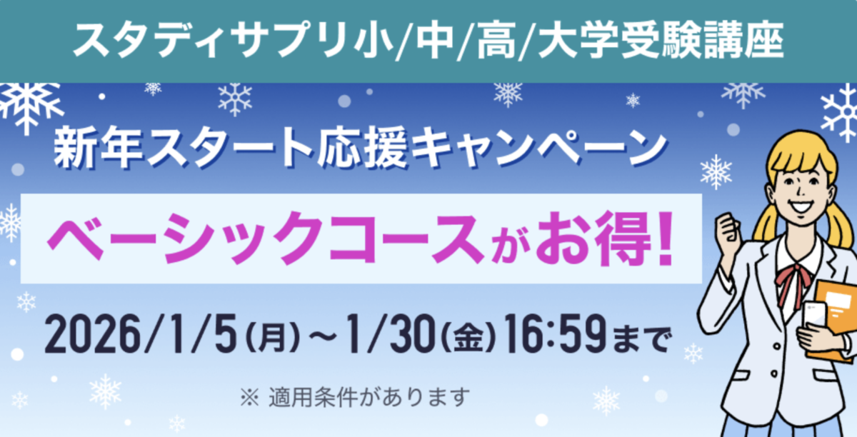 - 対象:ベーシックコース(小学講座・中学講座・高校講座・大学受験講座)