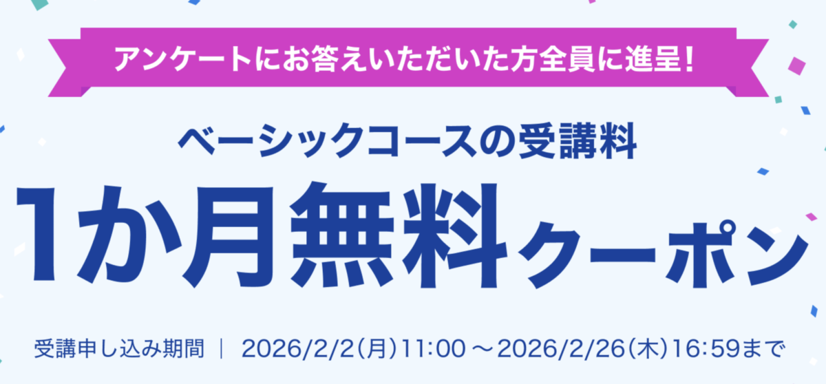 - 対象:ベーシックコース(小学講座・中学講座・高校講座・大学受験講座)
