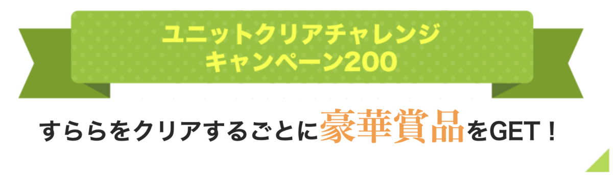 現在、「ユニットクリアチャレンジキャンペーン200」を開催しています。